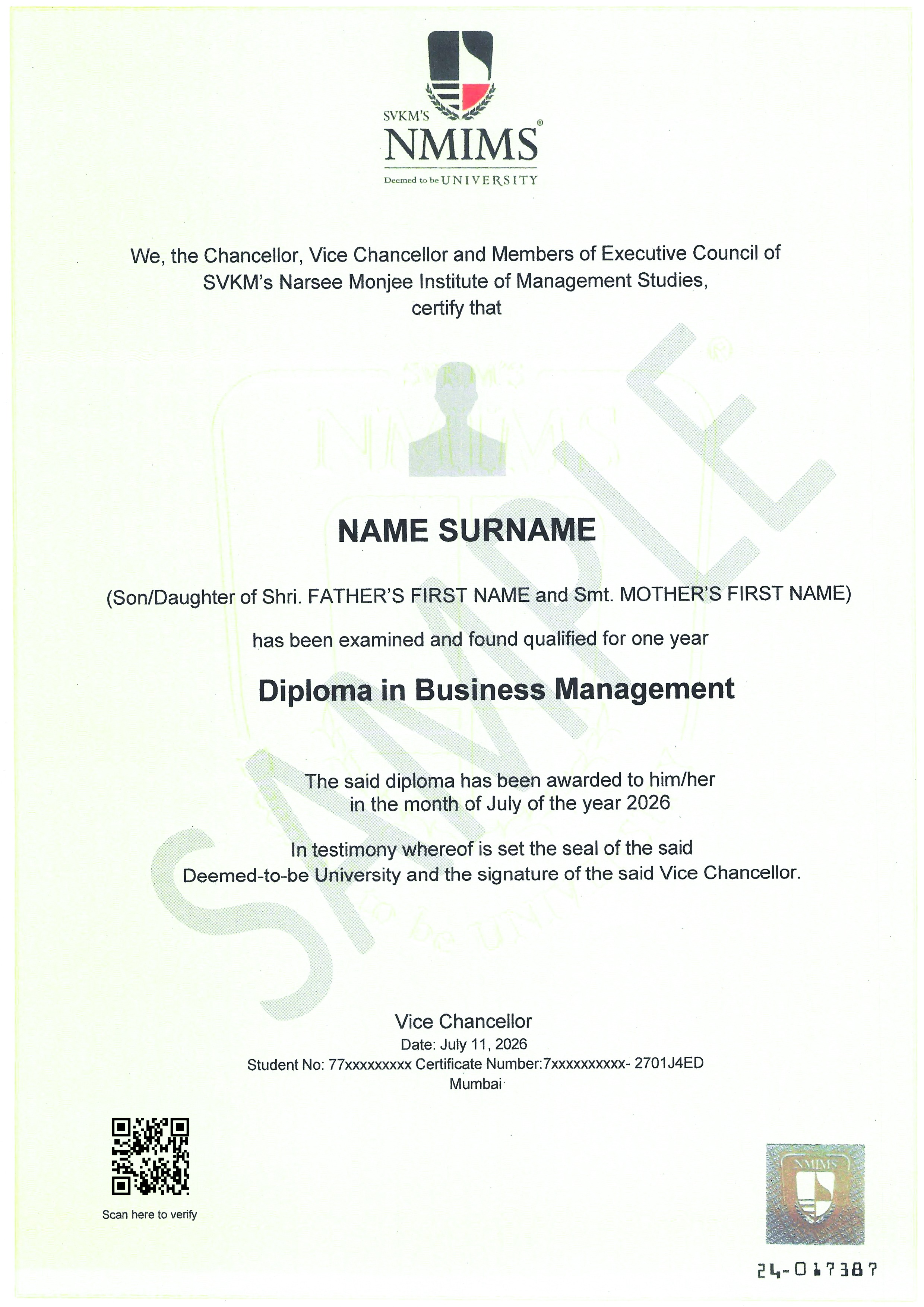 - Any payment made via Demand Draft should be made in favour of “SVKM’s NMIMS” payable at Mumbai.